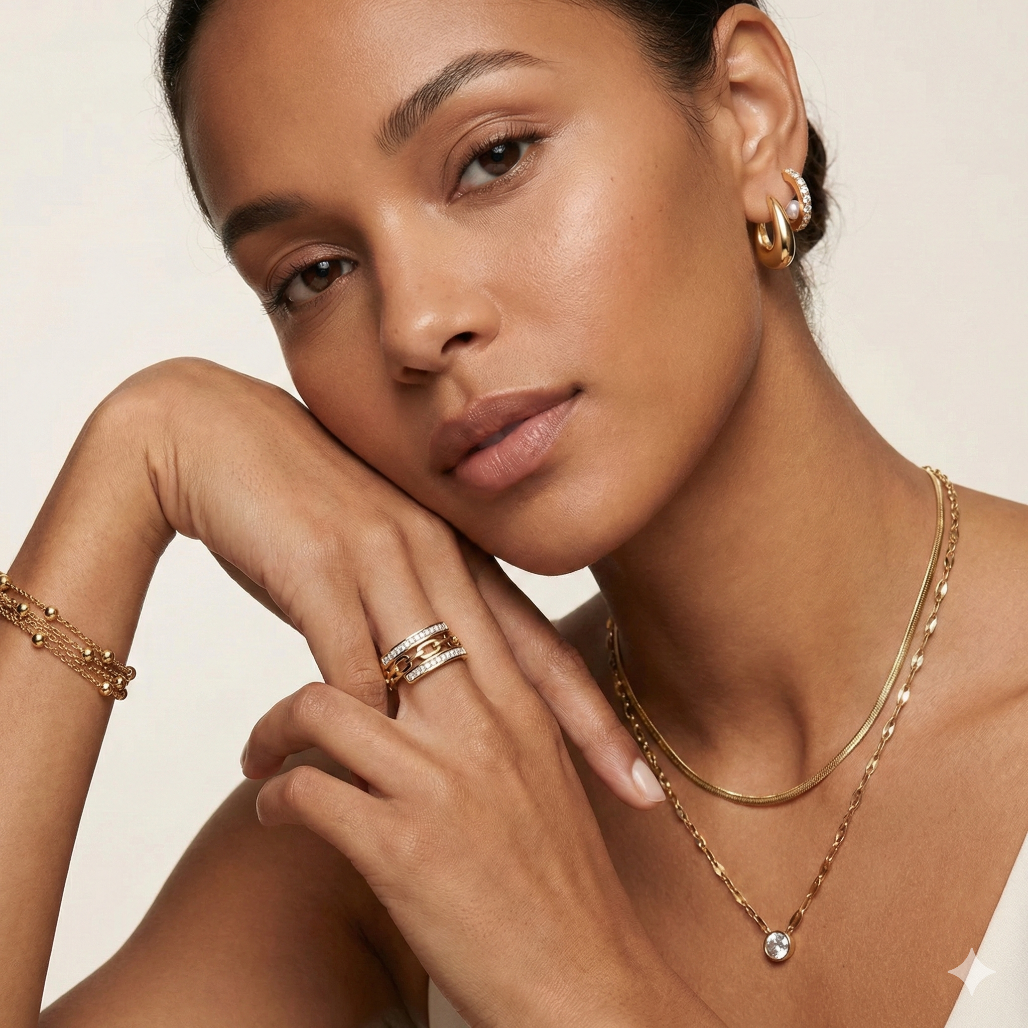 Mon ambition était de briser le dilemme entre la fantaisie éphémère qui s’abîme et la joaillerie traditionnelle souvent inaccessible. Nous sélectionnons exclusivement des matériaux nobles, l’acier inoxydable et l’Or 18 carats pour garantir une durabilité irréprochable et un éclat éternel.